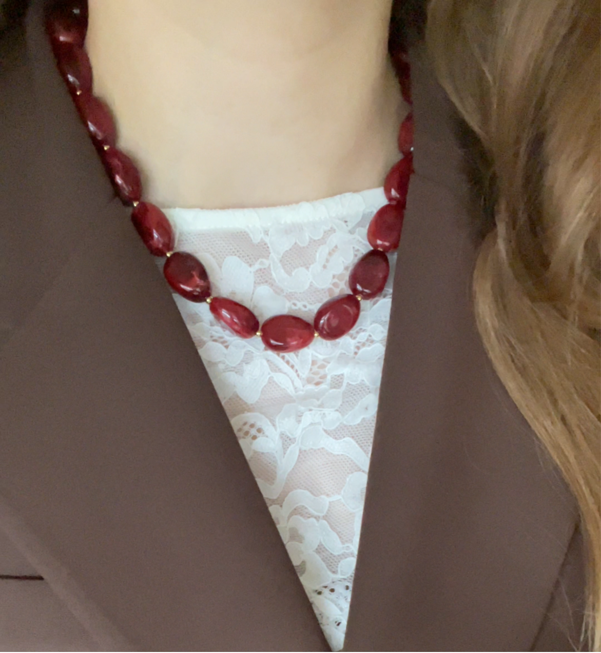 Burgundy Stone Kralenketting - goud