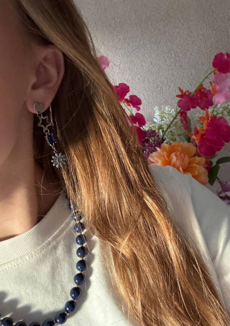 Onze Blue Star Oorbel in het zilver is een echte must-have voor dit seizoen! De verschillende bedeltjes zorgen voor een speelse uitstraling, waarbij het blauwe steentje zorgt voor een klassieke look. Naast dat je de oorbellen perfect kan dragen voor een feestje met onze Locked in Love Ketting, is die ook leuk te dragen alledaags.
