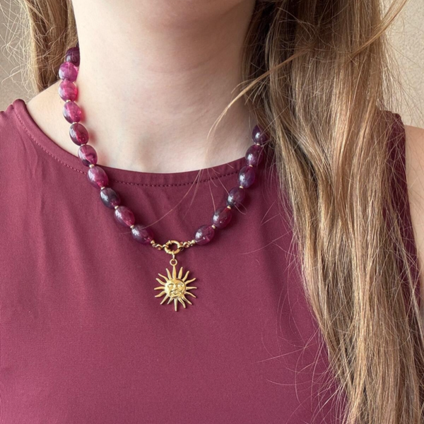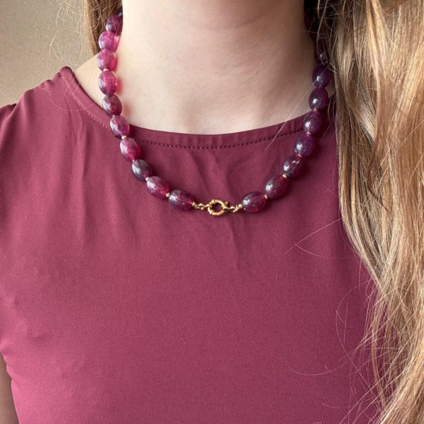 Maak je eigen bedelketting! Deze mooie unieke paarse kralenketting is helemaal on-trend. Kies een bedel uit in de categorie bedels en dan hangen wij hem eraan. Zo creëer jij je eigen unieke ketting.