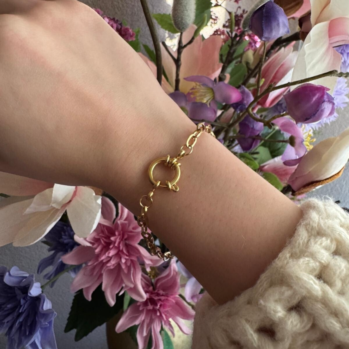 Maak je eigen bedelarmband! Deze leuke gouden boeislot armband is subtiel, tijdloos en trendy. De armband bevat ronde schakels, wat de armband speels maakt. Kies een bedel uit in de categorie bedels en dan hangen wij hem eraan.